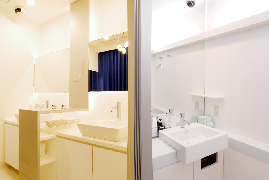2. パウダールーム院内2ヶ所ございます。洗顔・お化粧直しにご利用ください。