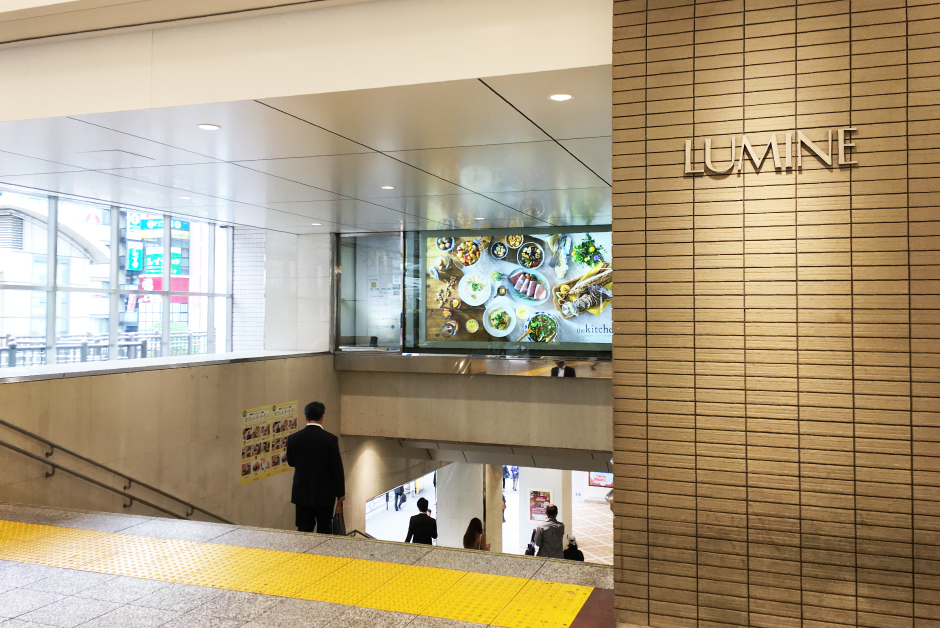 北口出口付近、右手ルミネ横に1階におりる階段がありますので、そちらをおります。