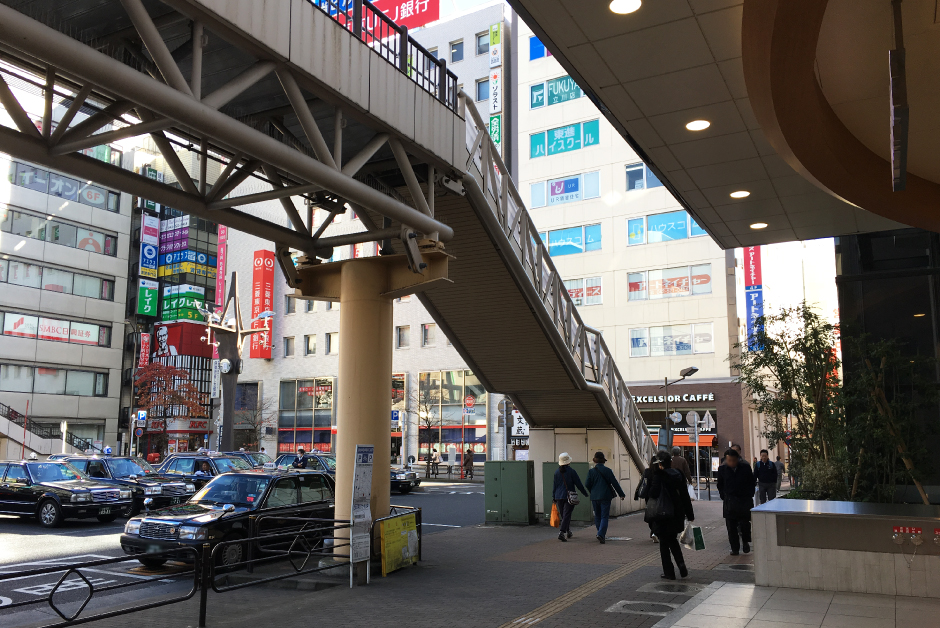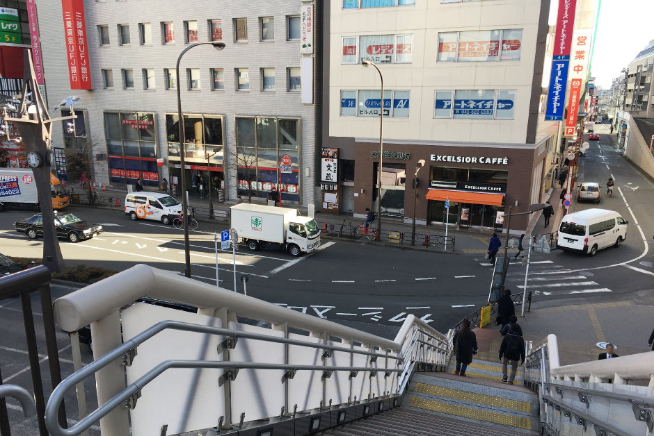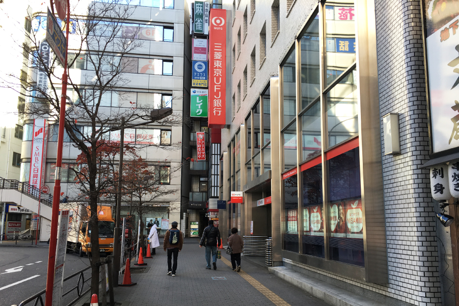 歩道橋を渡ると、目の前に三菱東京UFJ銀行が見えてきます。