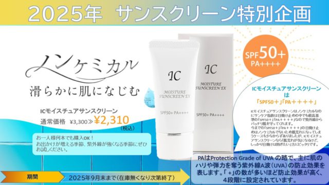 そこで当院の日焼け止め「ICモイスチャーサンスクリーンEX」をご紹介させていただきます。