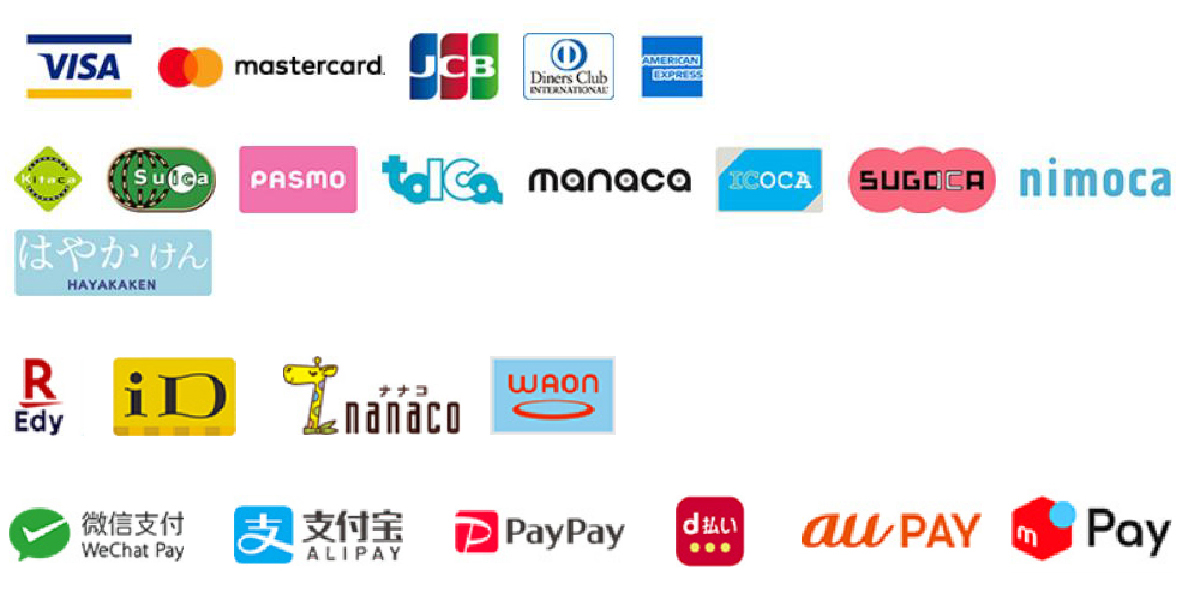 A 04.現金、クレジットカード、電子マネー、交通系電子マネー、QRコード決済がご利用いただけます。詳しくは以下の画像をご確認ください。