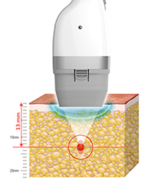より効果的に脂肪細胞を破壊できるため、高い痩身効果が期待できます。 - 皮膚へのダメージをカットリポセルが熱エネルギーを照射するのは皮膚表面から深さ13mmの脂肪層。