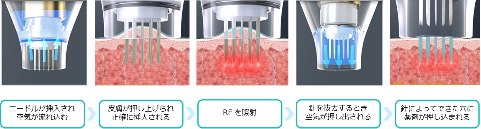 このドラッグデリバリー機能によって従来のマイクロニードル治療よりも高い効果実感が期待できます。