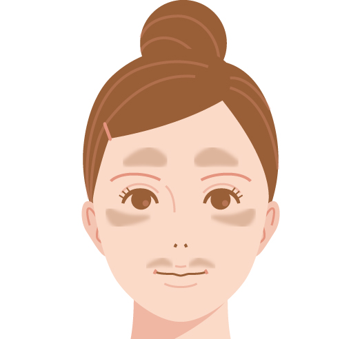30代~50代の女性に多くみられるシミです。両頬、前額部、上唇に左右対称に広がり、輪郭がボワーっとぼやけているのが特徴です。