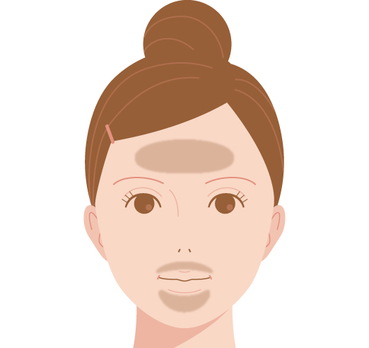 肝斑とは、両頬、額、上口唇に左右対称かつ不規則地図上に出る薄褐色のシミのことです。