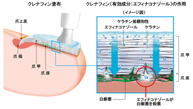 外用薬での治療にはルコナックとクレナフィンを使用します。ルコナックには白癬菌を殺菌する作用のあるルリコナゾールという成分が含まれています。爪の表面から塗っても白癬菌のいる爪の中や爪床まで浸透します。